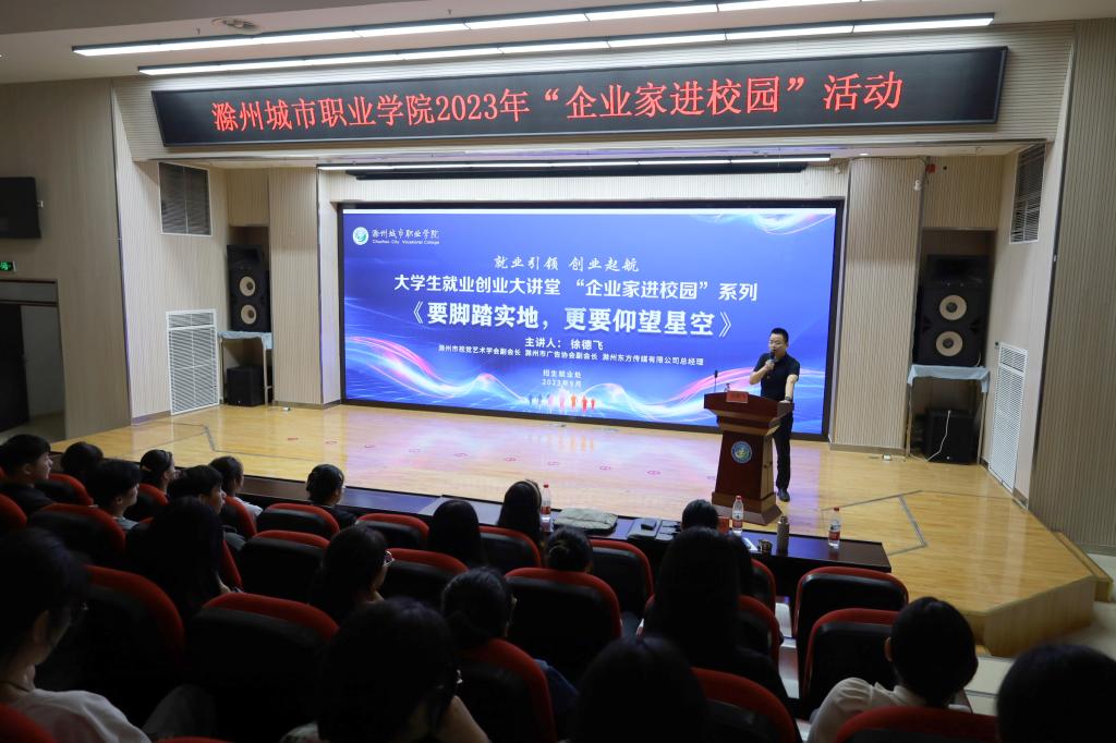 为加强职业生涯教育和就业指导,激发大学生创业热情,提高创新创业能力,9月26日下午,我校在图文中心四楼报告厅举办大学生就业创业大讲堂,开展“企业家进校园”活动。活动邀请滁州东方传媒有限公司总经理徐德飞和捷能通安徽区执行总裁、优秀校友石成群宣讲创业故事。活动由招生就业处处长朱启来主持,近200名学生代表聆听了讲座。讲座中,徐德飞以《要脚踏实地,更要仰望星空》为题,结合个人丰富的成长成功经验,告诫同学们...