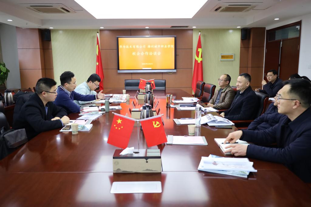 3月5日,华为技术有限公司安徽政企滁州城市总经理王成龙等一行4人来校就校企合作事宜进行交流洽谈。校党委书记王燕永出席并主持座谈会,教务处处长戴锦明、管理与信息学院院长叶士舟、招生就业处处长朱启来、办公室副主任张如清参加活动。在观看学校宣传片后,王燕永对王成龙一行表示欢迎,并从学校发展现状、专业建设、人才培养、校企合作等方面介绍了学校的办学情况和办学特色。他指出,华为技术有限公司具有独特的企业文化,...