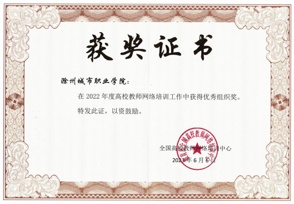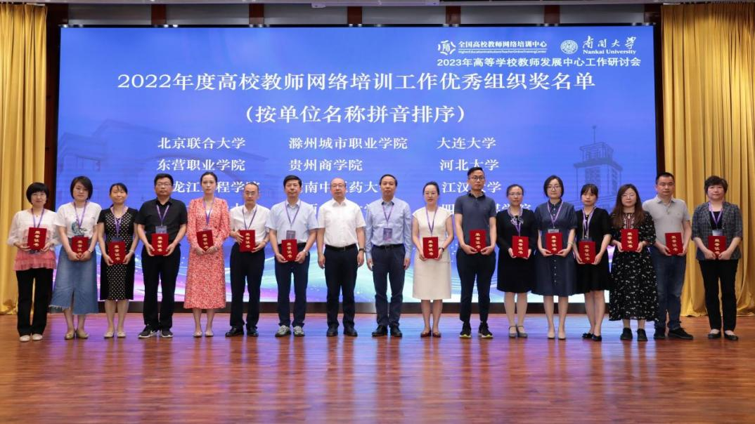会上还宣布了2022年度高校教师网络培训工作突出贡献奖、优秀组织奖名单。我校荣获“高校教师网络培训工作优秀组织奖”。